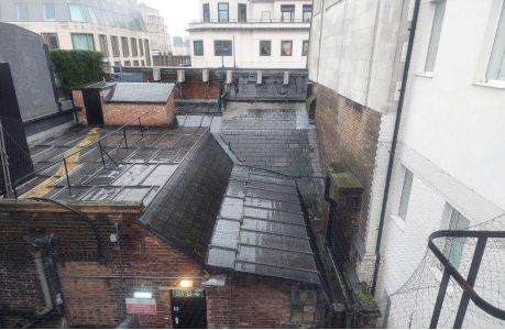 The project addressed long-standing issues to landlocked roof areas discharging into an internal lightwell, where blocked drainage had resulted in repeated water ingress. The scope focused on roof renewal, improved drainage performance, and the provision of safe access for future maintenance.