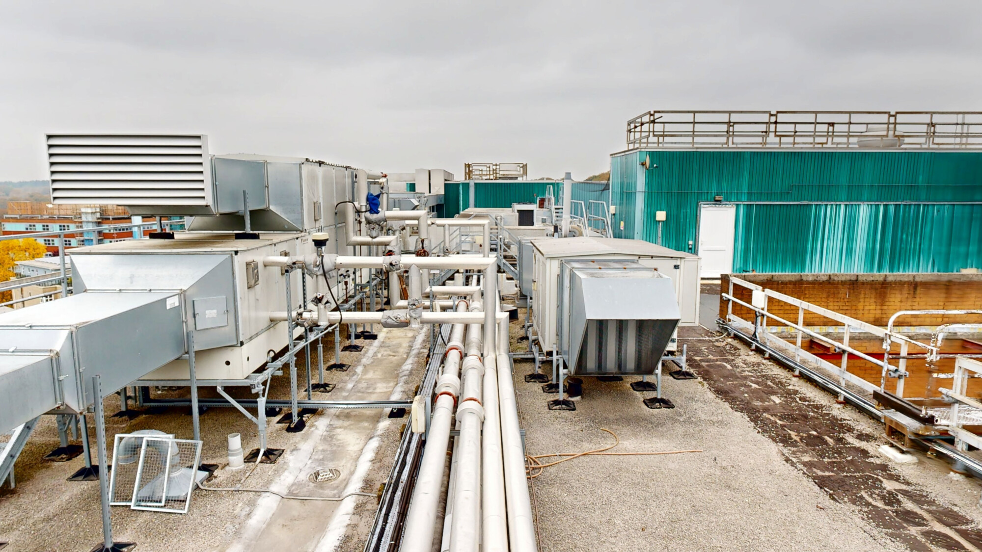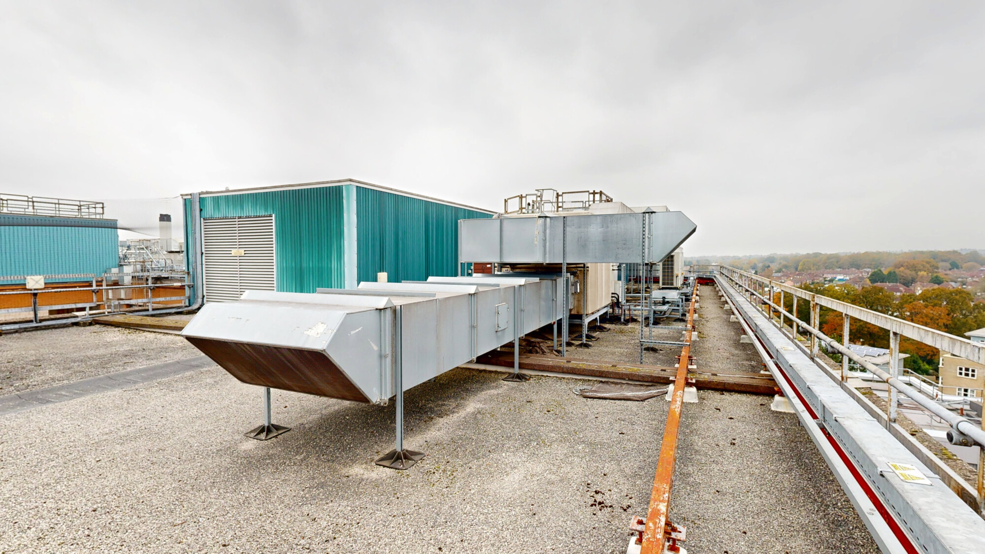 The existing ventilation systems no longer met current HTM requirements, creating a need for replacement within a live healthcare setting. The rooftop location and proximity to key clinical blocks required detailed planning to manage access, sequencing, and system changeovers.