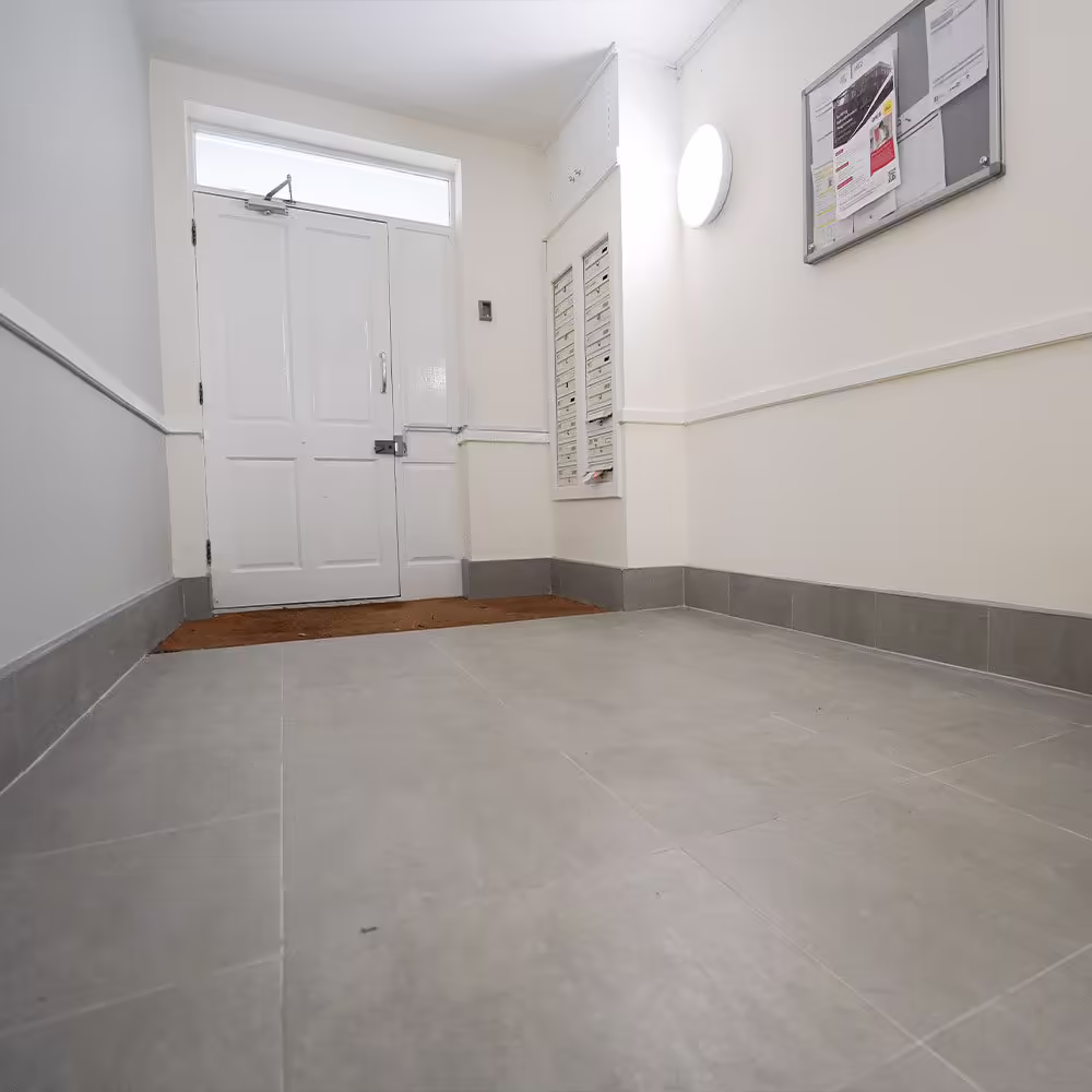 We helped our client choose the best tiles, paint and wallpaper for each project and we added painting all woodwork and ceilings to the original brief so that the quality of the communal decorations work was consistent throughout each property.