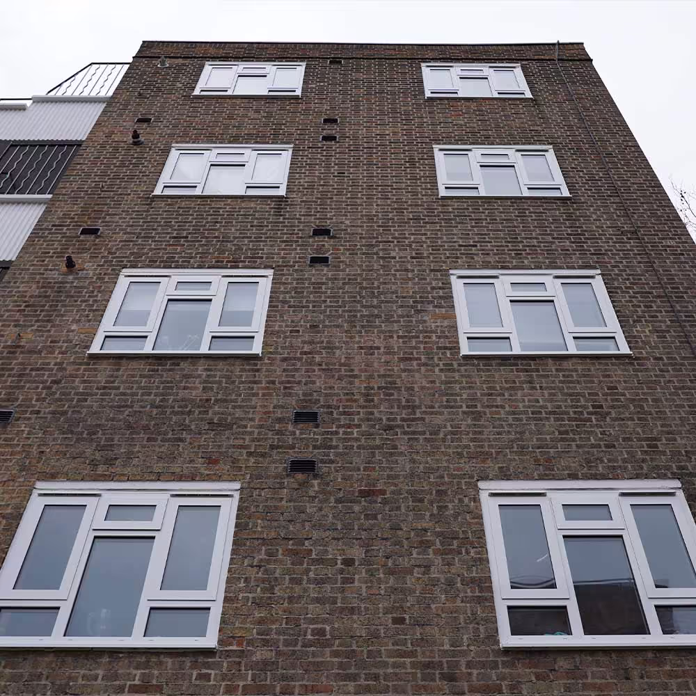 We conducted repair works to PVC-U external balcony door sets and windows and also to the bullseye communal windows in the communal stairwells, reinstating wire mesh to prevent birds from nesting.