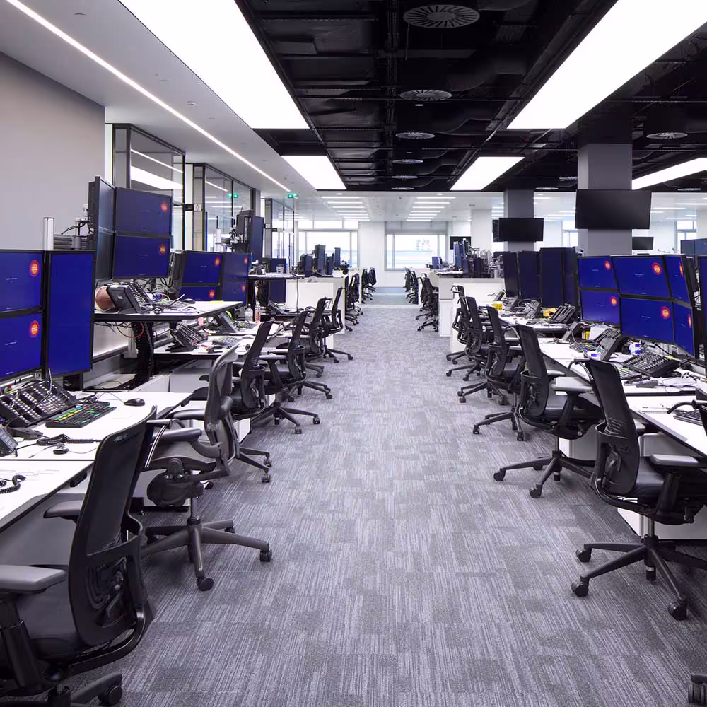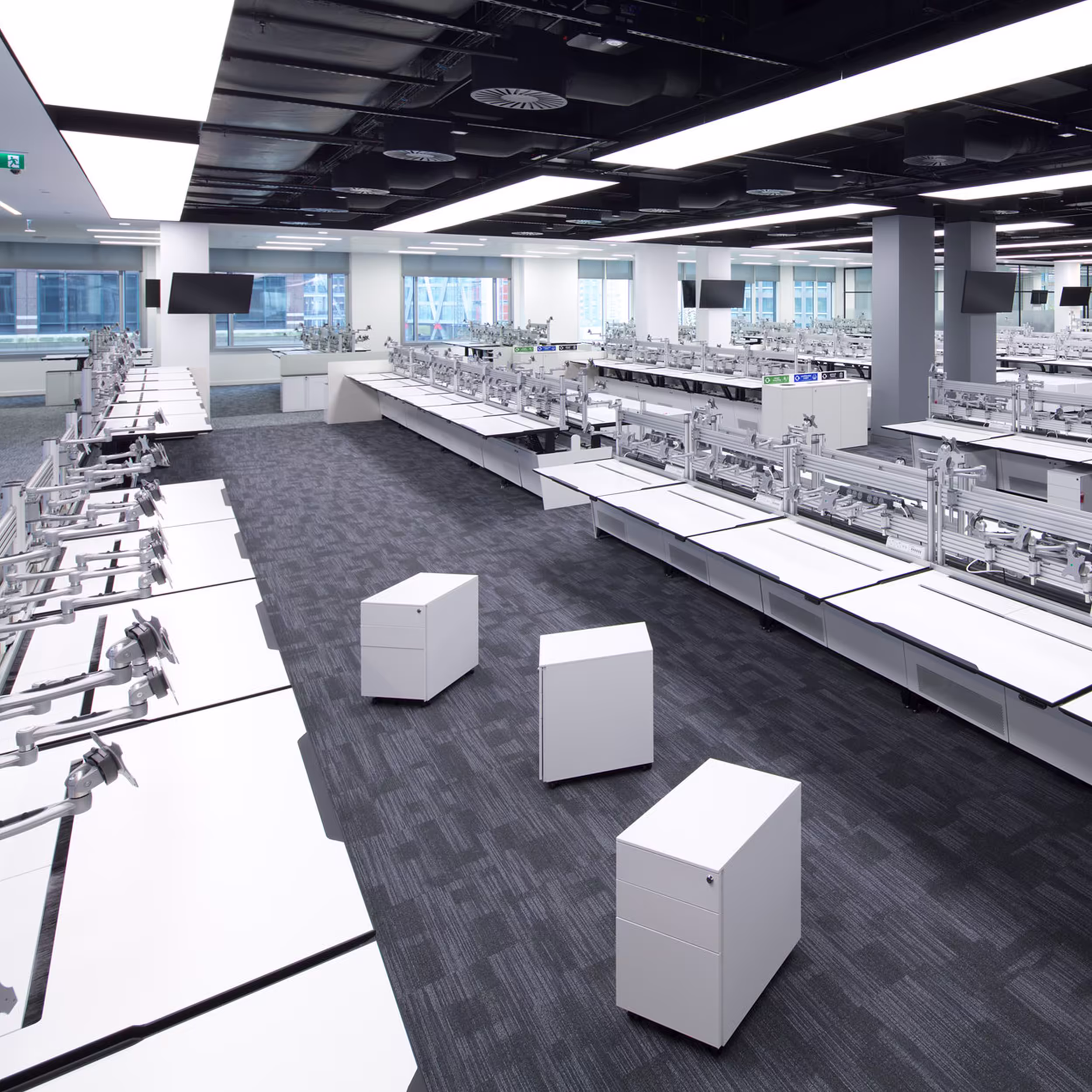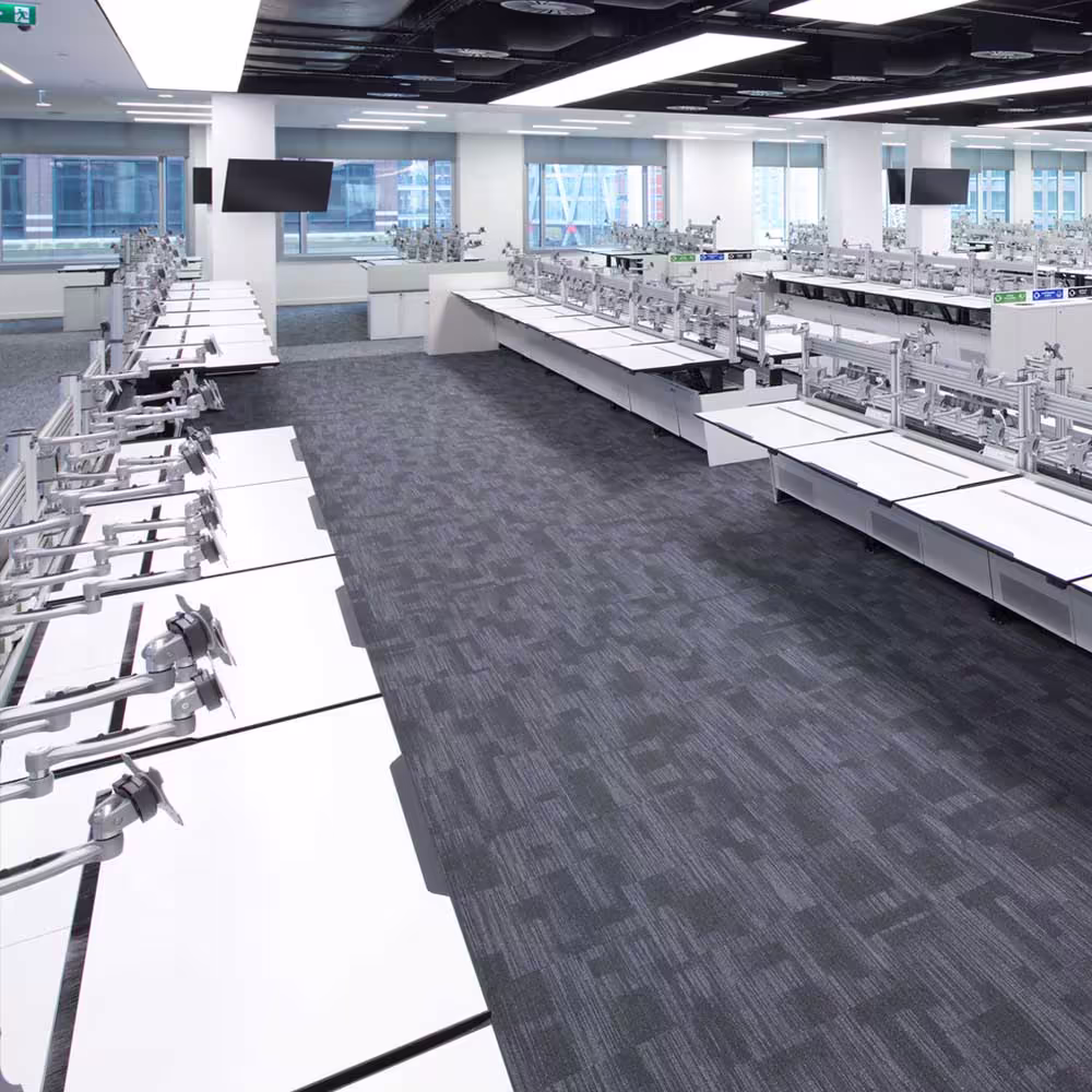 Our team began their scope of works with the removal of all hardware within the data suite, this left room for installations and decorative works. After removing the data suite, we installed a new ceiling and raised floor to match the existing system present in the rest of the building.