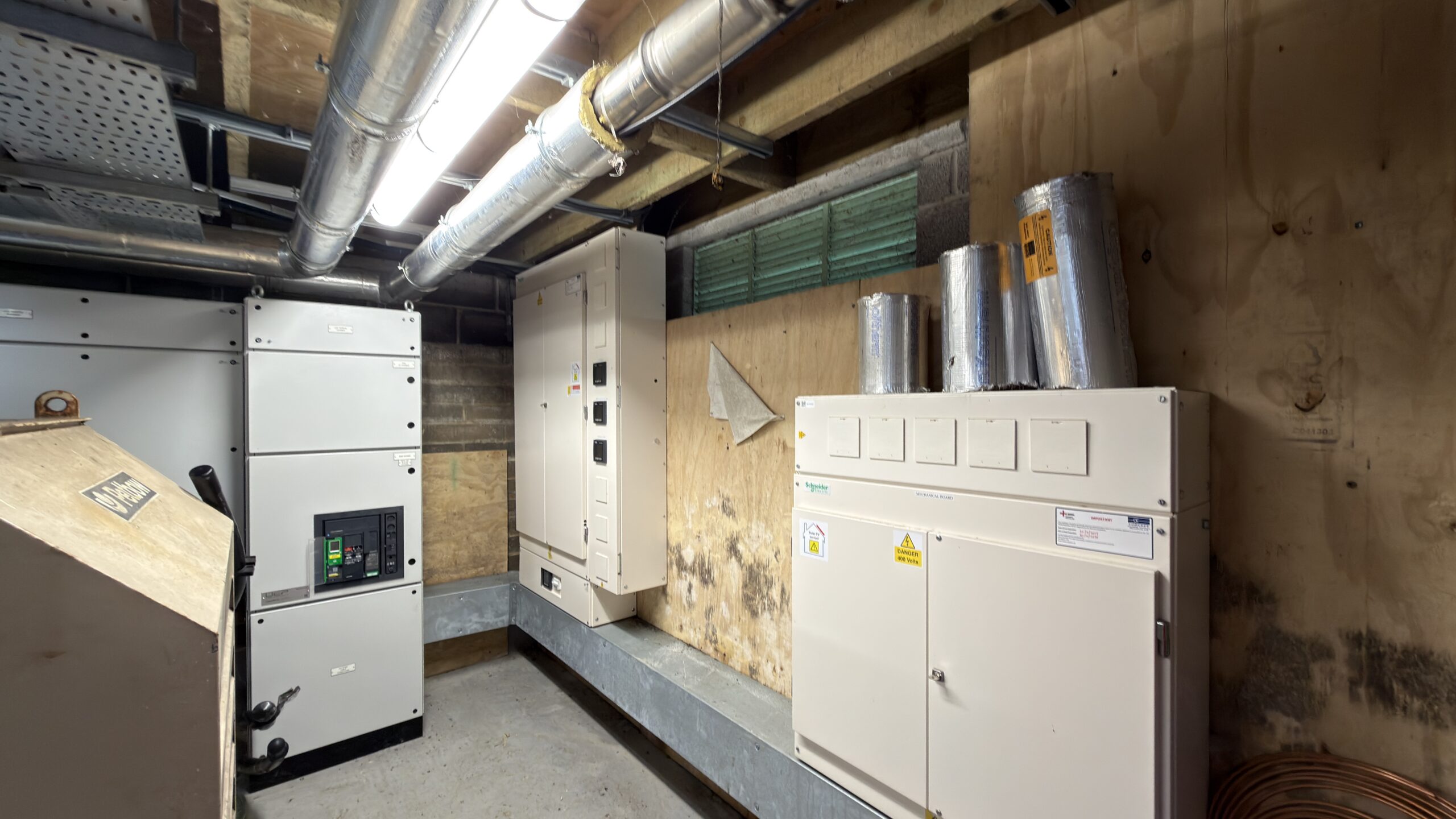 The introduction of heat pumps and renewable energy systems created a higher electrical demand across the site. To address this, we carried out major power infrastructure upgrades to ensure the building could support the new systems while maintaining operational resilience.