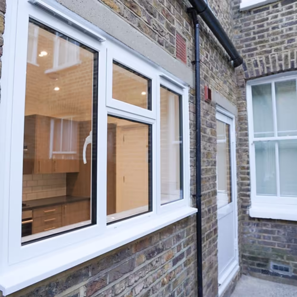 • Replacement rear extension timber windows with double glazed aluminium windows