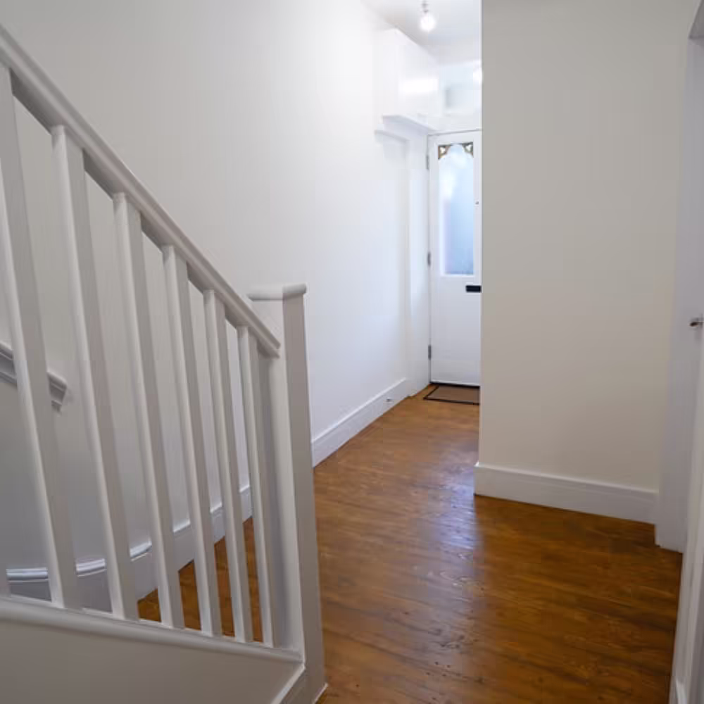Whilst thoroughly modernising the property, which was originally converted into flats in the 1980s, our team carefully restored original period features including the front door and the railings.