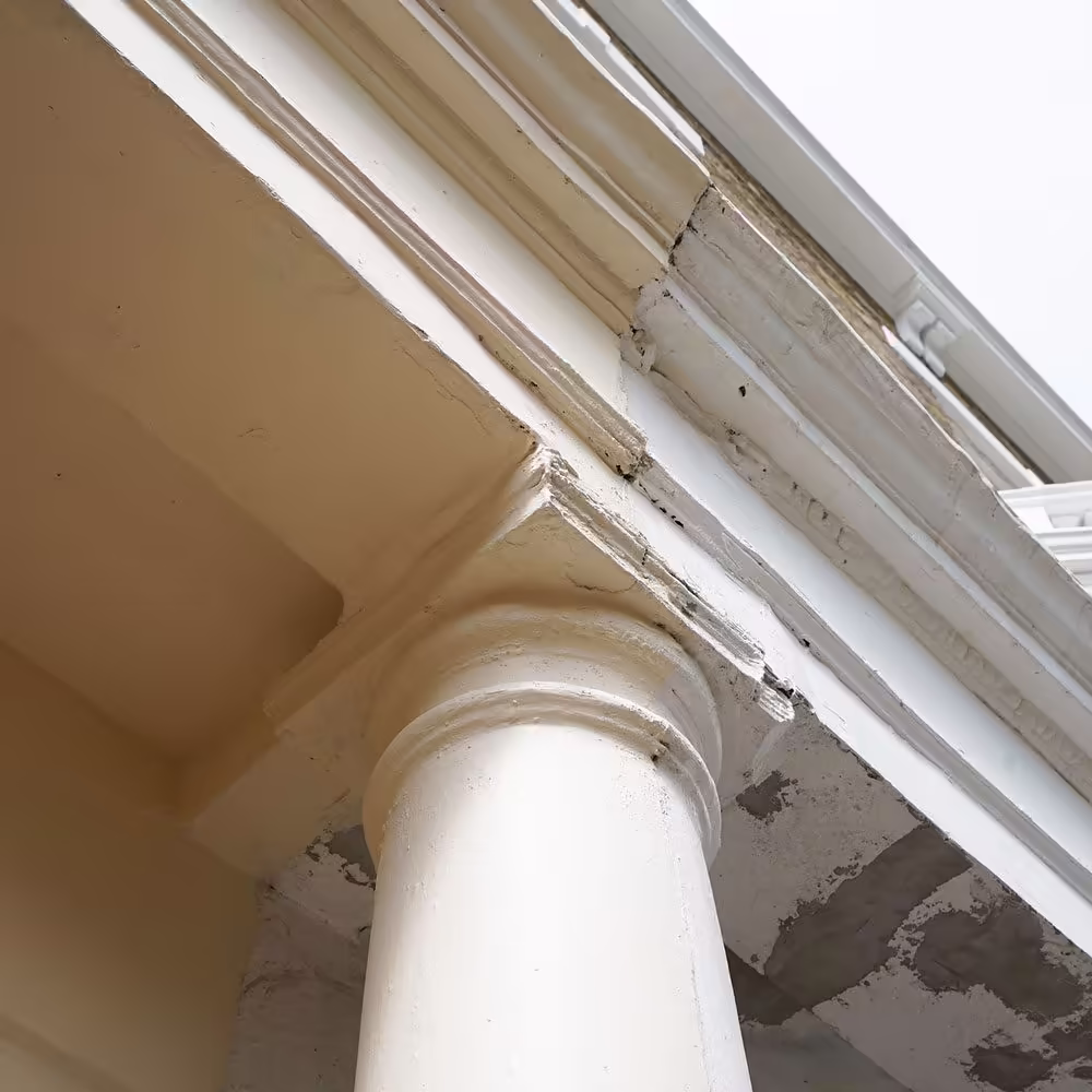 We began with a full roof replacement (see our roofing services here), including the supporting structure, and installed a robust steel beam to ensure maximum stability and durability. This step laid the foundation for a secure and long-lasting roof. Our team expertly handled the demolition and rebuilding of the rear wall up to the first floor, ensuring the new structure met modern safety standards while preserving the building’s historical integrity. Additionally, we completely rebuilt the front parapet wall and the lower balcony, significantly enhancing the structural soundness and appeal of the property.