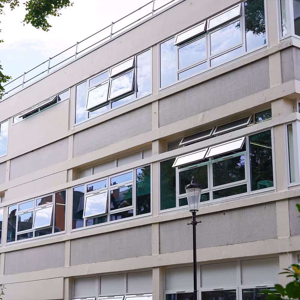 All the high-level windows were fitted with auto opening mechanisms to provide adequate fresh air and ventilation circulation naturally within the building. Other internal and external facilitating works were carried out and included; ceiling renewals, electrical installations, ventilation and air conditioning. Concrete repairs and painting work was carried out to the external facades of the building.