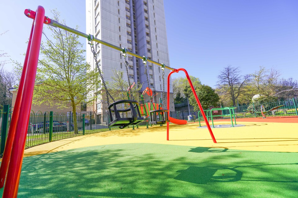 social housing block of flats infront of a high rise block of flats in Southampton